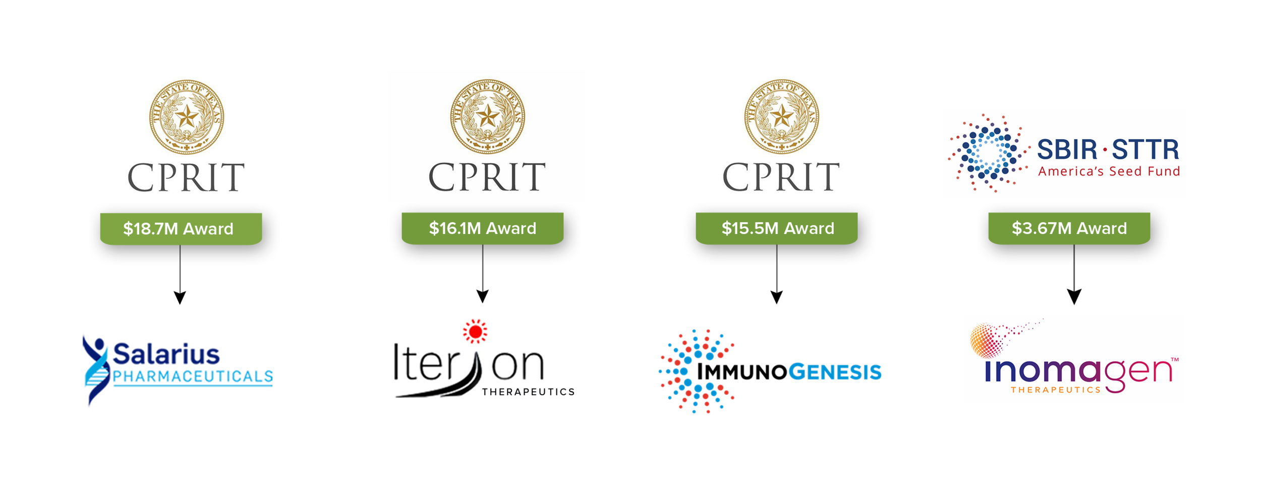 - Secured $50M+ of awards from the Cancer Prevention Research Institute of Texas (CPRIT) resulting in the advancement of drug programs through pre / clinical studies